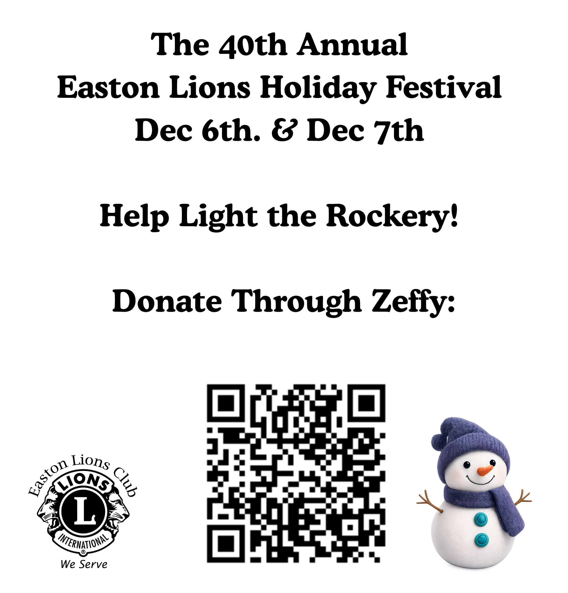 In 1988 the Easton Businessman’s Association passed along the baton for the Festival to the Easton Lion’s Club. The Lions took up the task and committed the resources to take over the management of the Festival of Lights, a Holiday-season event. We jumped in with our usual determination, growing it into the festive event it is today.